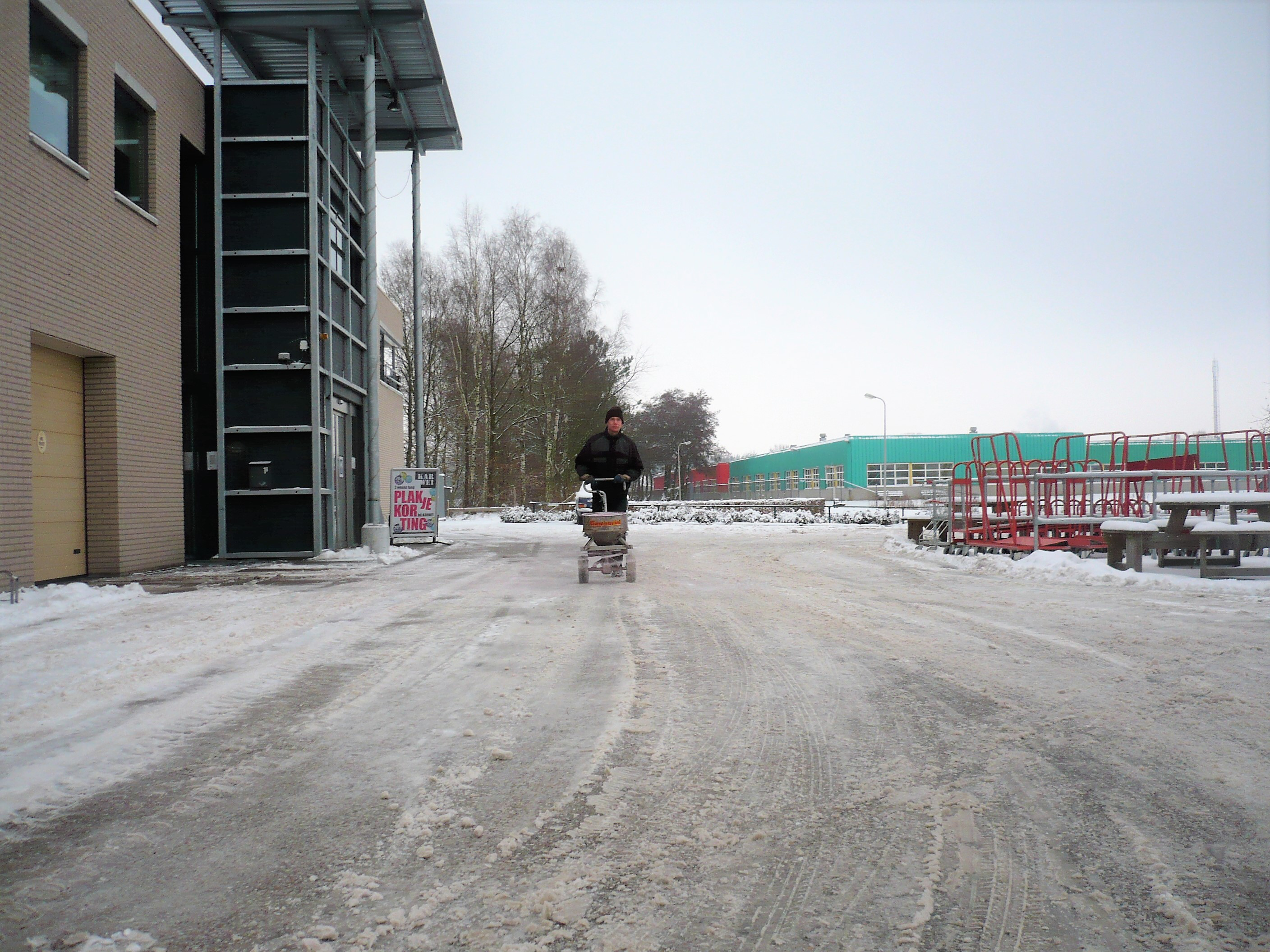 Met deze zoutstrooier kunnen wij zowel preventief als correctief zoutstrooien. Al of niet in combinatie met