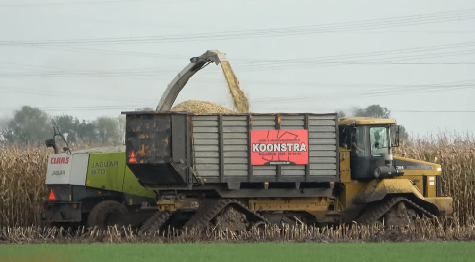 In verband met de natte maispercelen zijn wij veel op het land te vinden met onze Claas hakselaar en Terra Gator 2104 op rupsen.