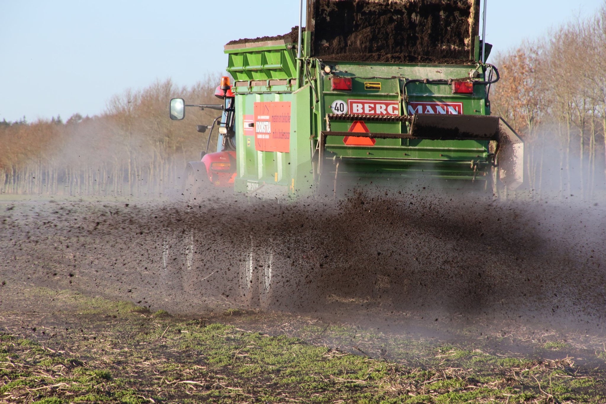 Compost strooien met Bergmann en JCB met hoogkiepbak.