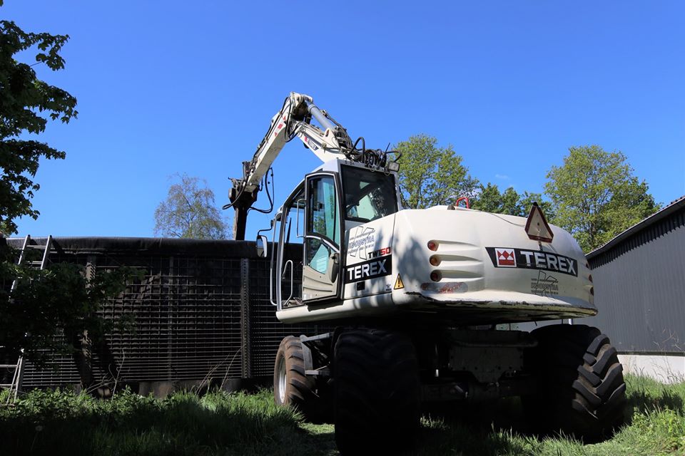 Met behulp van een mixer aan de mobiele kraan kunnen wij mestsilo's of mestbassins mixen.